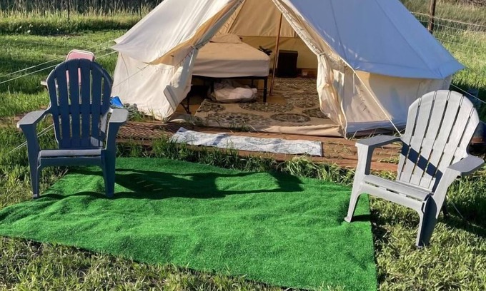 Please note : there is a full size off the ground bed. Can sleep four but 2 is more comfortable. We are have clean porta potties . The Glamping Tent can be driven up to. It does have lights in it. It is on a deck not the ground. It’s a yurt with a bed don’t expect to much :)