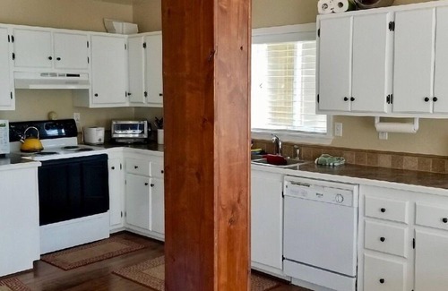 The Lodge is always clean and fully stocked. We are used to feeding large crowds with large pans, crock pots, etc. We have blenders, mixers, coffee pot, toaster oven, air popcorn popper, large griddles and more. Washer and dryer available too.