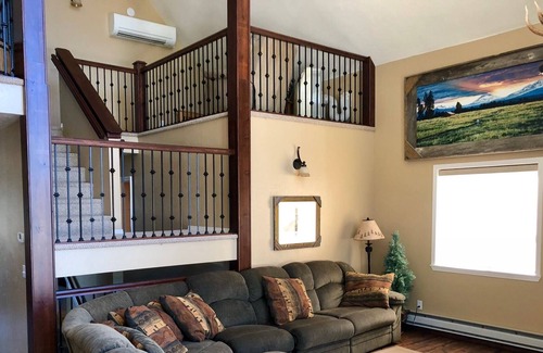 Comfortable and upscale furniture is found throughout the cabin. The main living room area accommodates two split areas. One can snuggle by the fire on one side, or sit and enjoy mountain and lake views on the other. The lodge has places of refuge for everyone! With large bedrooms, and a loft upstairs with books to read, everyone is sure to find a special spot for some privacy and solitude. Downstairs you’ll enjoy a game and entertainment room where children and adults can play with Nintendo games, watch DVD's, play air hockey, throw darts, or play pool; Another TV/DVD/VCR available in the Master Bedroom. New! Tv's with DirectTV in 2 upstairs bedrooms! Whether you’re looking to find solitude or entertainment, Windancer Lodge has it all!