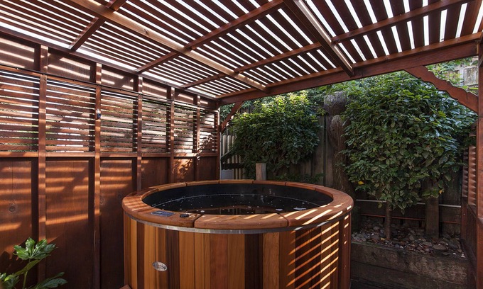 An outdoor pool, a children's pool, and a hot tub are on site.