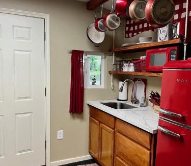 22 miles from Cynthia Woods Mitchell Pavilion in Montgomery, Casita with Swimming Pond & Sand Volleyball Access features accommodations with access to an open-air bath. With lake views, this accommodation provides a patio. There's an outdoor fireplace and guests can use free Wifi and free private parking. The air-conditioned vacation home consists of 1 bedroom, a living room, a fully equipped kitchenette with a microwave and a coffee machine, and 1 bathroom with a walk-in shower and a hair dryer. Towels and bed linen are provided in the vacation home. The property has an outdoor dining area. Guests can make the most of the warm weather with the property's barbecue facilities. For guests with children, the vacation home offers outdoor play equipment. A car rental service is available at Casita with Swimming Pond & Sand Volleyball Access, while fishing can be enjoyed nearby. The Woodlands Mall is 21 miles from the accommodation, while The Woodlands Golf Resort is 16 miles away. George Bush Intercontinental Airport is 34 miles from the property.