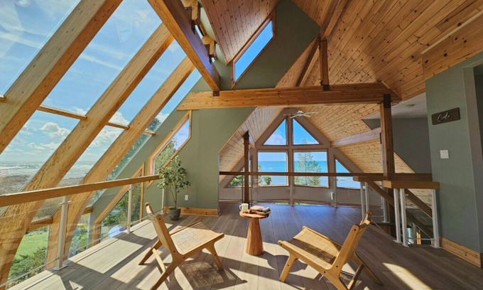 ⭐ Unparalleled panoramic lake view from the 2300sqft A-frame.