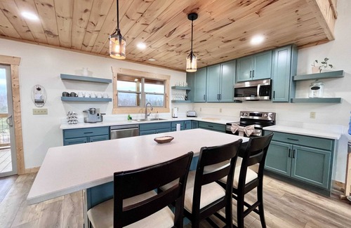 Cat's Cradle is a beautiful cozy cabin nestled in the perfect location of the Red River Gorge. Step through the threshold of this charming cabin and be greeted by a warm and inviting atmosphere, where the spirit of craftsmanship permeates every detail. The handcrafted interior, adorned with natural wood accents and lovely taxidermy, exudes a sense of tranquility and harmony with the surrounding wilderness.