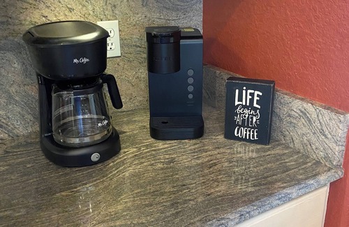 The bedrooms invite a restful sleep with high quality Simmons BeautyRest mattresses. All beds and pillows feature allergy proof covers to help ensure the most comfortable sleeping experience possible. The spacious master suite is a haven with a king bed and sitting area that overlooks the desert and gardens. The master en-suite bathroom has granite counters with dual sinks and a large granite shower with glass-block and built in bench. An oversized walk in closet filled with custom cabinets and shelving completes the room. Down the hallway are the other bedrooms. Bedroom #2 with another king sized bed is a beautiful space and bedroom #3 has two twin sized beds. Both have lovely shutters and spacious custom closets that make unpacking easy! Additionally, every bedroom is equipped with a flat screen television and ceiling fan. The second bathroom is right outside bedroom #2.