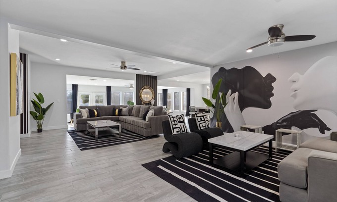Inviting elements include indoor and outdoor quiet sitting areas sequestered throughout the property where you can enjoy early morning sunrises and gorgeous evening sunsets. Enjoy 6 Smart TV's including a 65in TV in the living room. The space is wide open with plenty of seating and space to accommodate up to 16 people comfortably