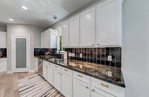 The lower level is a retreat all its own with a second master bedroom with a king bed and en suite bathroom with a soaking tub. The lower level also has a living area/game room with a poker/chess table, skee ball machine, and ping pong table. The lower level also boasts a second kitchen which leads to the outdoor patio with a table for 8 perfect for outdoor meals cooked up on the patio's propane grill.
