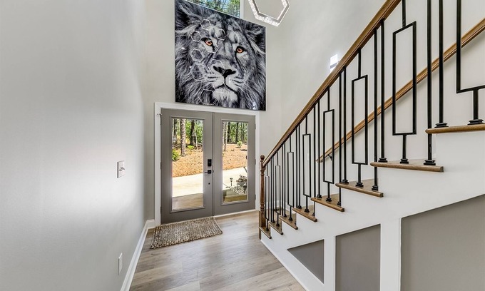 Located in the beautiful mountains of Helen, Georgia, this delightful 4-bedroom, 3 1/2 bath custom built vacation home offers the perfect blend of comfort and entertainment, for the family to enjoy a luxury mountain getaway. Named for our 2024 Kentucky Derby horse, Catalytic, the home is adorned with custom equine art that pays homage to our love of these magnificent animals.