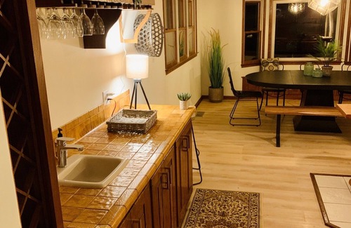 Enjoy the large outdoor deck with outdoor kitchen, fire-pit, grills, outdoor music, basketball court, and so much more! Enjoy the giant screen TV's and home theatre system for a great movie night! With 3 bedrooms and 2 and a half baths, the home is spacious with 2 huge living areas, yet cozy, with plenty of room for large extended families and friends.