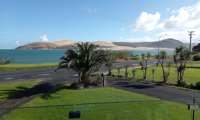 This lovely holiday accommodation is across from the beach, has stunning views across the harbour to the golden sand dunes and out to the Tasman Sea and is beautifully appointed with all the home comforts.