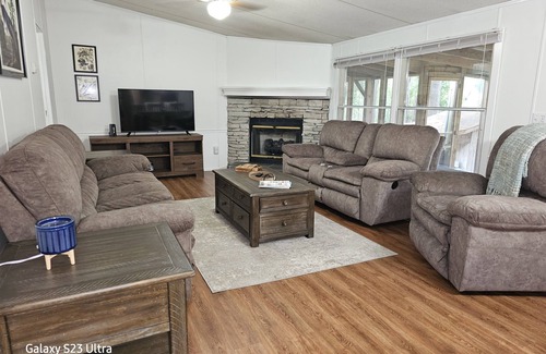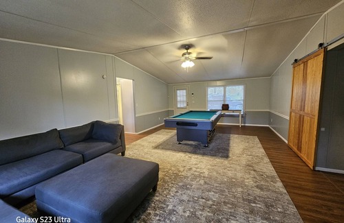 Fun for the whole family! Boat dock at property and boat launch is approx 1.5 miles at Bakers Landing where you can gas up your boat right atbthe dock while enjoying a quick bite from the deli. After a day in the water come back and enjoy a game of 8 Ball pool, corn hole and horseshoes for family entertainment. Screened porch with table and chairs. Perfect for outdoor dining. Large yard with 2 bays for your you boats. Quiet neighborhood.