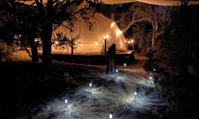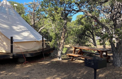 Looking for a Glamping experience? Hope Acres is in the tall Pinion Pines at 7800 feet atop of a Mesa in Northern Utah. Just minutes from 2 large Reservoirs, Strawberry and Starvation to include mountain lakes, rivers for fishing, boating, Canoeing, Kayaking, Swimming and other water activities. While the property lies in the middle of mountainous country there are many hiking trails as well as off road UTV and ATV trails for riding the back country. If your into sightseeing then this is the place, with many different species of wildlife that roam this beautiful landscape as well as a Birds Eye view of the high terrain that awaits you. Hope Acres has beautiful Bell Tents that are placed on elevated decks with comfortable Queen beds and some twins. Each tent boasts air Conditioning that provides the comforts of home while enjoying the outdoors. Each camp site offers a bathroom as well as a shower, picnic table, Hamock, BBQ and outdoor sink, amenities for an enjoyable experience. If you are looking for a hideaway then come experience the beauty while relaxing and making memories at Hope Acres, we look forward to seeing you
