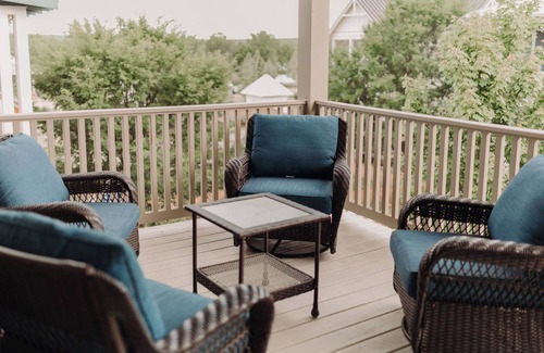 Walk out the front to a beautiful green space with fire pit, picnic tables, waterfall, space to run & play. Less than 2 min to the beach, Mama Tigs, Food Trucks, Sand Volleyball, Shops, Boardwalk Pool & Pool by the lake! With 2 masters, one on the main & the second floor that walks out to a covered deck! This home has space to play, relax & enjoy time with family & friends!