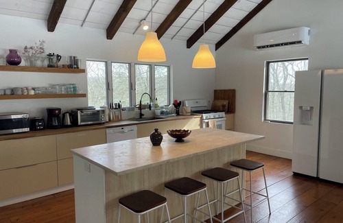 Enjoy full privacy with no neighbors in sight. The house is on almost 7 acres of land full of trees. The bedrooms are spacious with queen beds in every room, the master bedroom being especially large. Every room has large windows with forest views all around, with blackout curtains for the early morning sleep-ins.