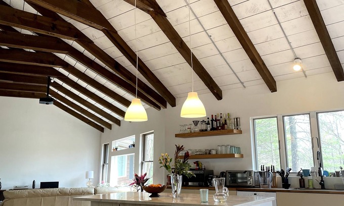 Our beautiful home in Olivebridge combines the coziness of a cabin in the woods with the roominess and modern amenities of a large family home. A big house with modern amenities that’s as cozy as a cabin in the woods! It’s a perfect base for exploring the Catskills and Hudson Valley, minutes from Ashokan reservoir, or a short drive to Woodstock, Kingston, and scenic nearby towns. Our 3-BR, 2-bath house is set back from the road, surrounded by nature with privacy in every direction. Huge living area with projector, well-equipped kitchen, a large yoga/WFH space, plus acres of outdoor space with a hammock and fire pit, BBQ, and large deck.