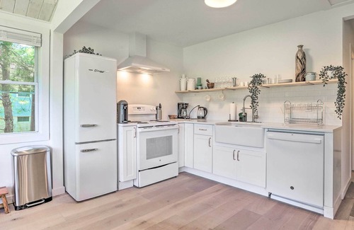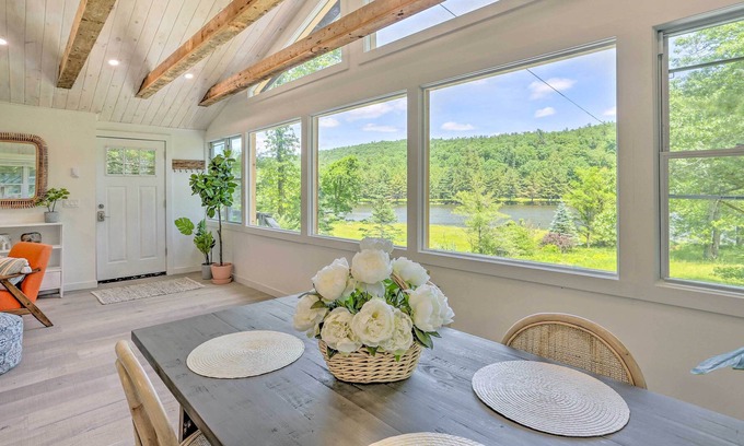 With its sparkling water views and secluded, middle-of-the-woods feel, this 2-bedroom, 1-bathroom vacation rental cabin is ideal for a city dweller's escape. Once you've settled in, make yourself at home in the bright and beautiful mid-century modern interior, or head out for a relaxing paddle on the lake. Prefer land-based activity? Stroll into downtown Narrowsburg, or go for a hike along the Upper Delaware Scenic & Recreational River. The tranquil beauty of the Catskill Mountains awaits!