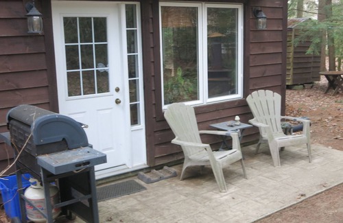 The Patio Suite is a self contained one bedroom unit nestled in the woods, five minute walk from Cawaja Beach. Open concept with kitchen, living room, bedroom, bathroom. Outside has a patio with bar-b-cue and a wood burning stove as a firepit for those starlit summer nights.