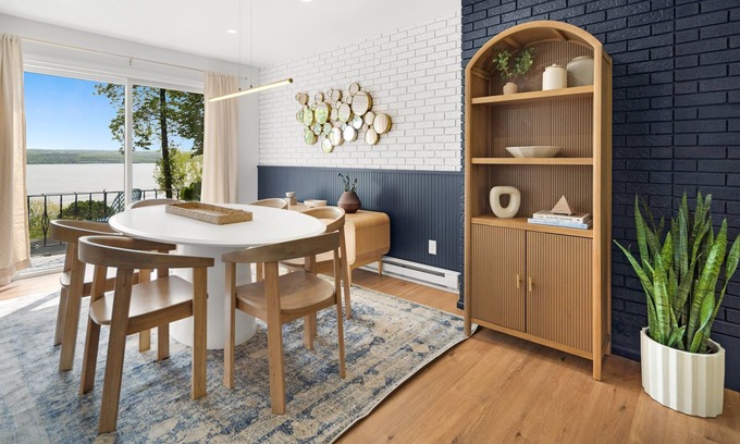 Three upscale, professionally designed bedrooms invite you to unwind after a day of adventure, wine touring, sightseeing, or just hanging out at the lake. All bedrooms are on the second floor and feature inviting queen-sized beds with luxury plush bedding and wall-mounted flat-screen TVs. The new dressers, luggage racks, and clothing rods provide ample space to unpack your belongings during your stay. The master bedroom and second bedroom have large windows to enjoy the unbeatable view of Cayuga Lake, and the master bedroom has a full ensuite bathroom. Custom design touches throughout each room are sure to heighten your vacation experience and have you immediately wanting to book your next stay. 🛏️🏞️🌙