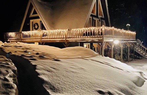 Cedar A-frame cabin with finished bunkhouse, sleeps 14 WiFi, AC in Glover, VT is located in Glover. Cedar A-frame cabin with finished bunkhouse, sleeps 14 WiFi, AC in Glover, VT provides accommodation, featuring Internet, Laundry, Air Conditioner, among other amenities. This Cabin features Internet, Laundry, Air Conditioner, to make your stay a comfortable one.