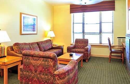 This spacious one bedroom suite features a separate bedroom with king bed, full bathroom, partial kitchen with mini refrigerator, microwave, coffee maker and toaster. The living area has a pull out sleeper sofa, fireplace and ceiling fans.