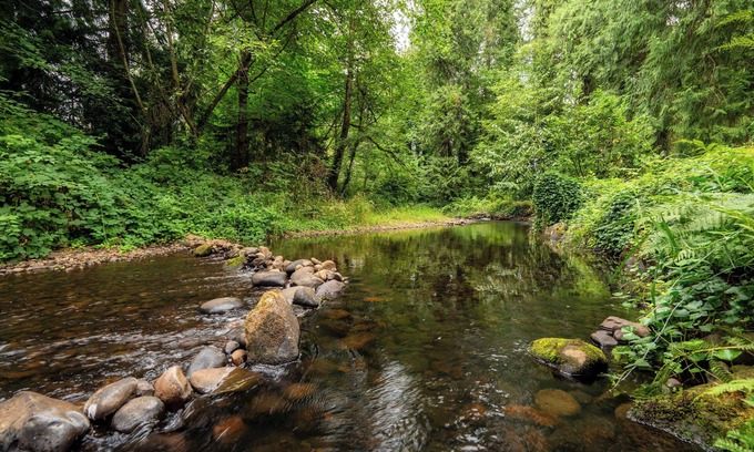 Located just off the Mt. Hood Scenic Byway in a quiet part of Sandy, the cabin is surrounded by trees and the calming sounds of Cedar Creek. You’ll feel secluded while still being just a 10-minute drive from local shops, grocery stores, and restaurants. The location offers easy access to hiking trails, mountain biking routes, and ski areas—Mt. Hood Skibowl, Timberline, and Mt. Hood Meadows are all within a 30-minute drive.
