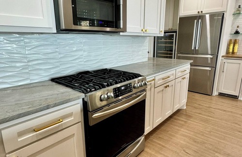 Fully equipped kitchen with modern appliances.