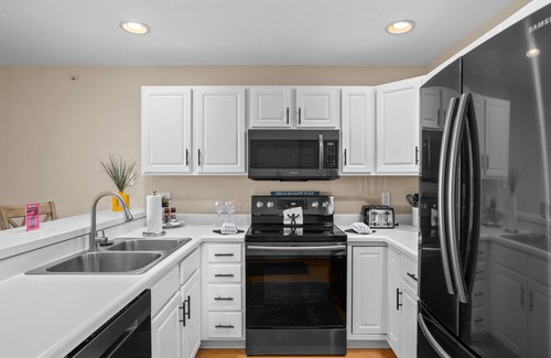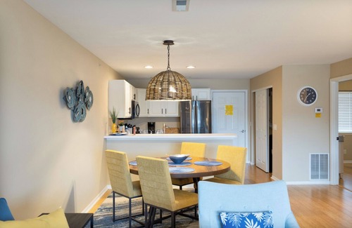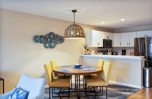 Enjoy a full kitchen with all major appliances, a dining area with seating for 6 and 3 more at the breakfast bar, and a living room with comfy couch and huge flatscreen smart TV with Spectrum cable as well. There's also a stack washer and dryer available for your use.