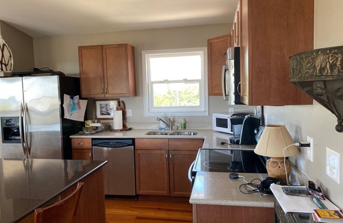 Come with your boat and use the dock. Great waterfront house. Front porch with wonderful sunsets every night. 3 bedroom with bunk beds, master bedroom with master bathroom. Fishing gear, canoe, kayak. Bring your boat for scallops or fishing and tie up. Watch the video. A set of swing sets for the kids too.
