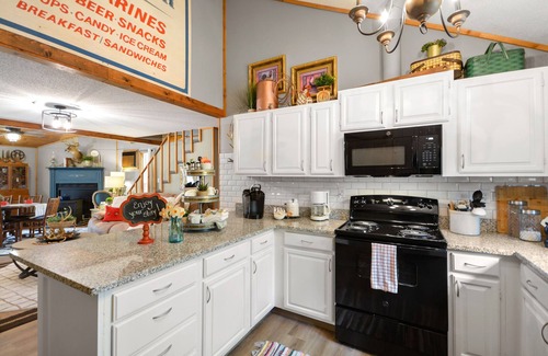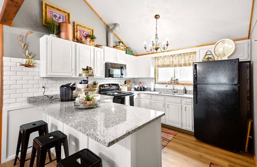 The cabin has a full kitchen, completely updated with granite countertops and new appliances. It has a Keurig, coffee maker, hand mixer, blender, toaster, can opener, pots & pans, dishes, cutlery, selection of coffee and tea, and basic kitchen spices. The living area has a smart TV with streaming capabilities, Xfinity cable, a DVD player, a large DVD movie selection and high speed internet/WiFi. There is no landline phone. Please check with your cell provider for service availability.