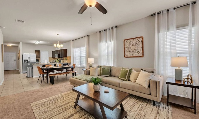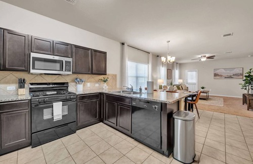 Have fun with the whole family at this stylish place. Located in a quiet Cedar Park neighborhood, this modern home offers the perfect balance of comfort and convenience for your getaway. With spacious interiors, a fully equipped kitchen, and a cozy living area, it's ideal for relaxing after a day of exploring nearby parks, trails, and family attractions like Brushy Creek Lake Park. Whether you're spending time indoors or enjoying the backyard, this home sets the scene for fun, connection, and lasting memories.