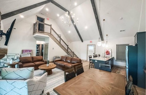 Escape to Cedar & Sky Cabin—a dreamy Ozarks retreat tucked in the woods with 3 king bedrooms, a fully stocked kitchen, and over 780 sq ft of deck space. Soak in the private hot tub, gather ’round the fire pit, or relax beneath the trees. Enjoy top-tier resort amenities: pools, pickleball, walking trails, hot tubs, and fishing ponds. Just minutes from golf courses and Thunder Ridge Arena, this cozy-meets-luxury stay is your perfect getaway.