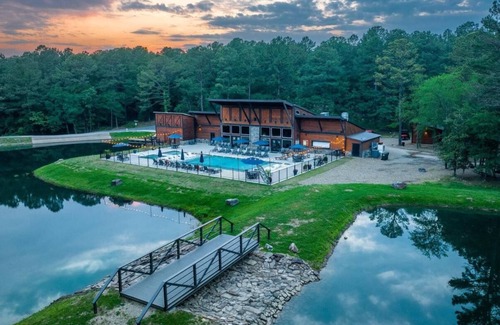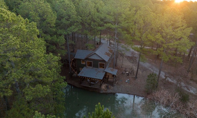 Welcome to Cedarwood Serenity, a brand-new, beautifully designed cabin nestled above the tranquil, stocked fishing pond at Pine Lake Resort. This cozy yet refined two-bedroom, two-bath getaway offers the perfect escape for couples or small families looking to unwind in comfort, connect with nature, and enjoy resort-style amenities just steps from your door.