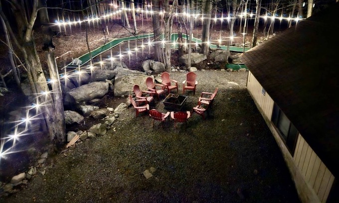 **USE OF 2 CANOES, 2 KAYAKS, 1 PEDAL BOAT and 5 BIKES INCLUDED WITH YOUR STAY!** “Mini-mini golf” in the backyard—fun for all ages! New Horseshoe Game in backyard as well! Come visit the Northern Poconos, take in the breathtaking beauty of all four seasons, and enjoy everything Willow’s Place has to offer! In the winter, get cozy with us in the cold weather, and relax and ski at Willow's Place! There's a ski hill in the community, open from late December through March. Go skiing or tubing, and then warm up by the fire at our house. In the spring, summer and fall, enjoy cozy fires at the backyard fire pit, and play mini golf in our backyard! Unwind after a long day with a large family dinner at our extended sunroom dining table. Welcome to the newly renovated, Willow's Place located Northeast Pa's premier, 4 season, recreation community, The Hideout! While a guest of this gold star, gated, amenity-filled community, guests will have access to 5 lakes, 2 beaches, marina with kayak/canoe rentals, private 9-hole golf course, 2 heated outdoor pools and kiddie pool, outdoor basketball/tennis/volleyball courts, playgrounds, ski slopes, snow tubing, ice skating, hiking trails, recreation center (indoor courts, game room, gym), art museum, woodworking building, mini golf, Club House restaurant and Tiki Bar.