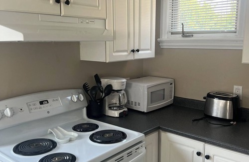 Bathroom accessories, coffee machine, toaster, microwave, oven, iron. Coin operated laundry in building. Cleaned and sanitized after each guest by Professional cleaning service.