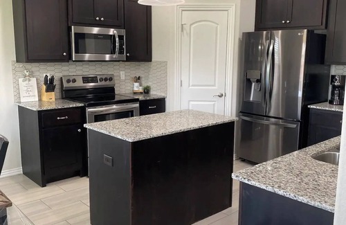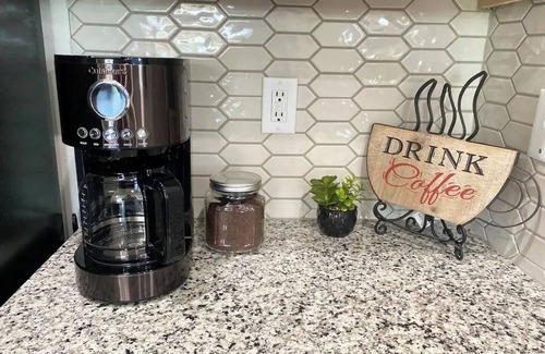 This stylish, family-friendly home is all about comfort. Park your car in the driveway and step into a welcoming space that’s ideal for both relaxation and gathering. The open-concept living and dining area features large windows, plenty of natural light, and a cozy living room with an LG smart TV, perfect for movie nights or winding down after a day of adventure. The fully stocked kitchen is ready for your culinary needs, with cabinets offering plenty of storage for groceries.