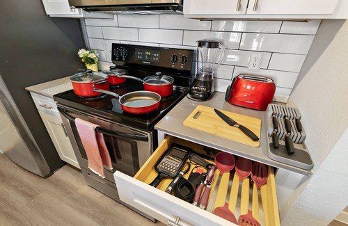Make the most of our well-equipped kitchen, complete with seasoning, pots/pans, and even complimentary drip coffee with cream & sugar for that essential morning boost.