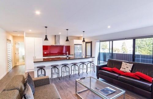 This Queenstown apartment includes tastefully presented open plan living, with all the mod cons including a smart TV, free Wi-Fi, and an eco-friendly wood pellet fire to keep you cosy during those crisp Southern winters! The well equipped kitchen is great for preparing your holiday feasts, or enjoy easy outdoor flow onto the deck equipped with a BBQ for classic kiwi summers - the shared spa pool is the perfect addition for extra relaxation...