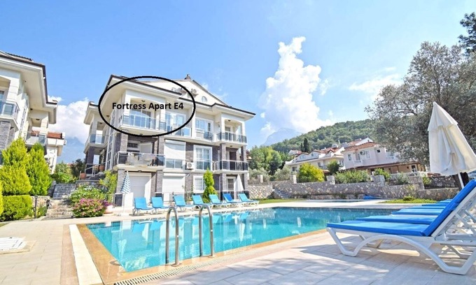 FORTRESS PARK E4 has one of the most sought-after locations in Hisaronu. This modern 3 bedroom apartment sleeps up to 6 people. All rooms have air conditioning, and there is a fully equipped kitchen which opens onto a main balcony over-looking the pool and gardens and wonderfull mountain view. Both upstairs bedrooms have ensuites bathrooms. The apartment has everything you need for a stress-free holiday, so you can completely unwind and enjoy what this stunning area has to offer.