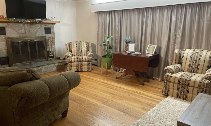 Enjoy easy access to everything from this perfectly located home base. Close access to major highways and centrally located between both Hartford/New Haven and Boston/New York! 2 miles from Aria (banquet hall). 2 main bedrooms (queen beds), 3rd bedroom/office with futon converting to a full-size bed (with a pillow topper) and desk with monitor, & 1.5 baths (half bath attached to master bedroom). 2-car carport. Perfect for short or long stays & work from home. Come see what New England has to offer while relaxing in this peaceful home!