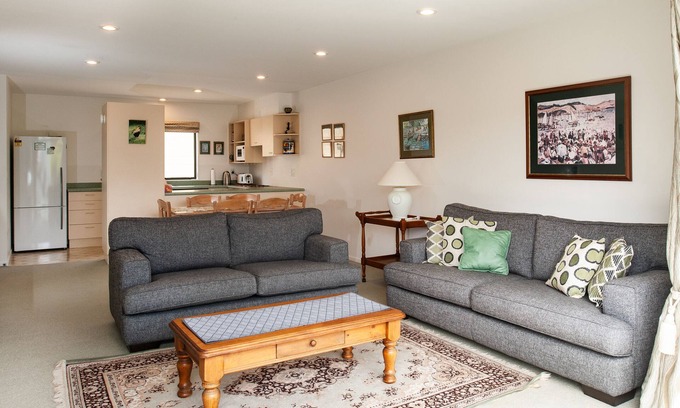 This comfortable central living apartment is in a quiet street, but only 1 block away from Akaroa superb restaurants, cafes and shops.