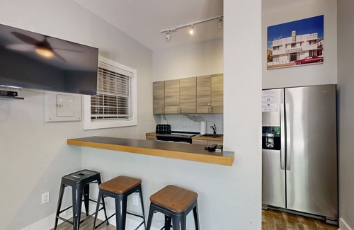 This cozy-yet-modern cottage apartment in Key West is a wonderful escape for any party of two! A flatscreen TV in the living room allows you to unwind with your favorite movies and shows, and the full contemporary kitchen has everything you need to cook a delicious meal. You'll even have a sunny patio with seating and lush greenery - the perfect spot to drink your morning coffee or sip a glass of wine with dinner!