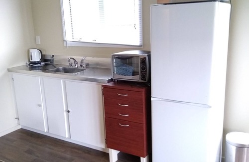 Spacious bedroom with Queen bed. Living room with well equipped kitchenette. Bathroom with shower and laundry facilities.