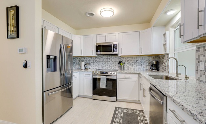 A living room, air conditioning, and a ceiling fan are featured at this 2-bedroom, 2-bathroom rental. The kitchen is equipped with a dishwasher, as well as a coffee maker, a microwave, and cookware.