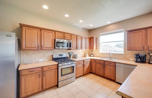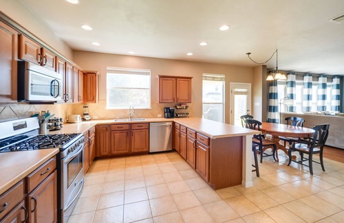 A fun-filled vacation awaits with a stay at this 4-bedroom, 2.5-bath Kyle vacation rental. This charming retreat features a fully equipped kitchen, private fenced-in backyard, and ample entertainment space to help you and your family feel right at home. This spacious home is conveniently nestled near I-35 between San Antonio and Austin and just a short drive from San Marcos & Texas State University! Opt to venture out to hike at McKinney Falls State Park or peruse the Zilker Botanical Garden.