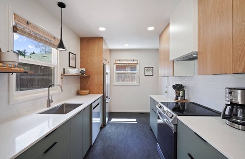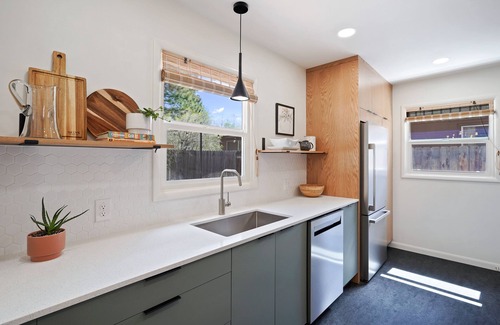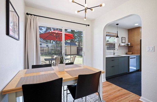 This 1950’s mid-century home has been lovingly updated. A mid-century modern house with an urban feel. Everything about this home is beautiful, from its refinished hardwood floors to the new kitchen and bath, it is charming and maintains the feel of its era. Tastefully decorated with prints from local artists, you will begin experiencing Bend the moment you walk in.