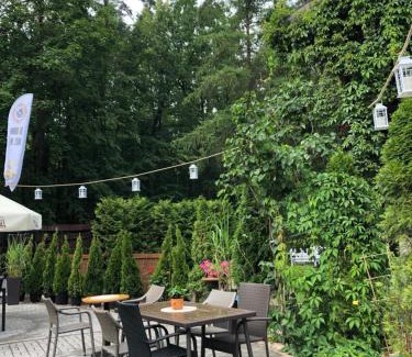 Cezar Dom Wczasowy in Ruciane-Nida provides accommodations with a garden and a bar. With free private parking, the property is 14 miles from Tropikana Aqua Park and 15 miles from Sailors' Village. At the guest house, every unit comes with a wardrobe, a flat-screen TV, a private bathroom, and bed linen. Every room comes with a kettle, while some have a terrace. The rooms are equipped with heating facilities. A selection of options including warm dishes, pancakes, and fruit are available for the continental breakfast. With an outdoor fireplace and a picnic area, this guest house offers plenty of opportunities to unwind. Townhall of Mragowo is 21 miles from the guest house, while Mrongoville is 23 miles from the property. Olsztyn-Mazury Airport is 37 miles away.