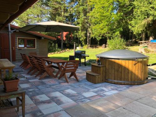 Offering a garden, Chá provides accommodations in Vysoká nad Kysucou. This property offers access to a terrace and free private parking. On clear days, guests can head outside to enjoy the chalet's outdoor fireplace. With free Wifi, this 4-bedroom chalet offers a satellite flat-screen TV, a washing machine, and a fully equipped kitchen with a dishwasher and oven. Guests can take in the views of the mountain from the balcony, which also has outdoor furniture. There's also a seating area and a fireplace. For guests with children, the chalet features an indoor play area and outdoor play equipment. Ski-to-door access and ski storage space are offered at Chá, and guests can go skiing in the surrounding area. Strecno Castle is 26 miles from the accommodation, while Budatin Castle is 19 miles from the property.