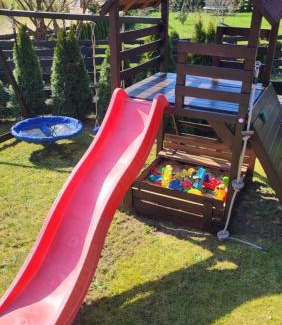 Providing a garden, Chëcz Kaszëbsko 59 features accommodations in Załakowo. This beachfront property offers access to a patio, free private parking, and free Wifi. The property provides barbecue facilities and outdoor furniture. Offering a terrace and garden views, the vacation home includes 3 bedrooms, a living room, flat-screen TV, an equipped kitchen, and 2 bathrooms with a bath and a shower. Towels and bed linen are offered in the vacation home. There's also a seating area and a fireplace. There is an on-site family-friendly restaurant, snack bar, and bar. For guests with children, the vacation home offers an indoor play area, outdoor play equipment, and a baby safety gate. A private beach area is available on-site, and both fishing and hiking can be enjoyed close to Chëcz Kaszëbsko 59. Train Station is 19 miles from the accommodation. Gdańsk Lech Wałęsa Airport is 31 miles from the property.