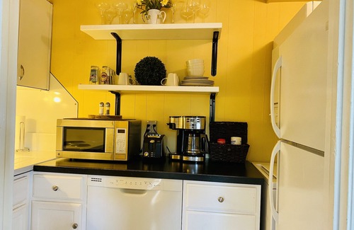 Enjoy nesting in 490ft of space with a designated parking spot just outside your door! This nesting destination offers hardwood floors throughout, a bedroom with King bed temperpedic mattress, 40” bedroom tv, living room with 50” tv, sofa sleeper, loveseat and dining area, with equipped kitchenette with cooktop, oven, microwave, full refrigerator, dishwasher, stacked clothes washer and dryer coffee maker, 2020 50” smart tv offers a YOUTUBETV streaming subscription, or access guests own accounts with the strongest Comcast WiFi available.