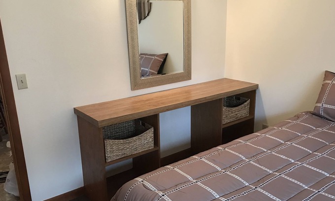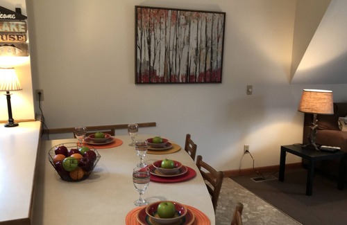 One of our premier Chalets. This unit is a two story floor plan with a bedroom with king sized bed, bath, kitchen, dining and living room with a twin downstairs and a large loft upstairs with a queen sized bed and a twin. Numerous decks with gorgeous views including a large cover gazebo. We will allow up to 8 guests in this unit. Additional guests more than 4 are $10/night. Children 12 and under stay free.