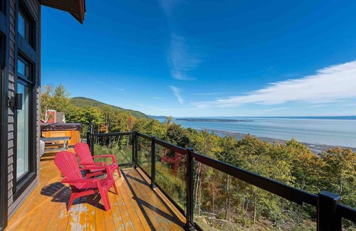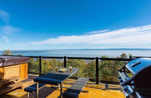 Indulge in an exceptional summer retreat, where panoramic views of the Saint Lawrence River blend seamlessly with luxury. This exquisite property is perfect for families or groups, featuring spacious interiors, a private spa, and a furnished patio with a barbecue for al fresco dining. Explore outdoor adventures or relax in tranquility, all while immersing yourself in the charm and culture of Charlevoix. Treat yourself to an unforgettable stay in this stunning riverfront sanctuary.